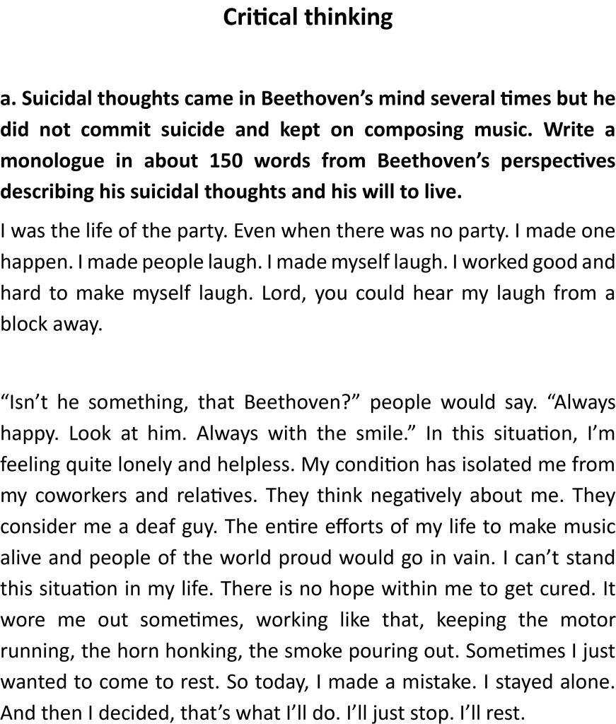 - Beethoven struggled with suicidal thoughts but overcame them through his ethical beliefs and passion for music and creation.